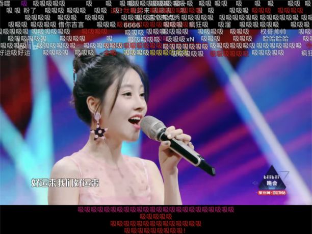 除了up主,弹幕也营造出浓重的参与感,演出进行的时候大量用户跟着同步创作,《欢迎回到艾泽拉斯》的“为了联盟”、“为了部落”,冯提莫即兴演唱的《好运来》,满屏的“吸吸吸吸吸吸”,让人有种一起围着边嗑瓜子边唠嗑边看晚会的既视感。