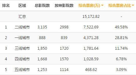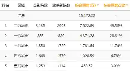 拓普电影智库的数据亦显示,当前影片的主要票房贡献来自于一二线城市,其中一线城市占比超过28%,远远超出国内上映影片的平均成绩;一二线城市票房占比超过了78%,三四线城市占比不足22%,作为对比,《雷神3》一二线城市之外占比超过30%。