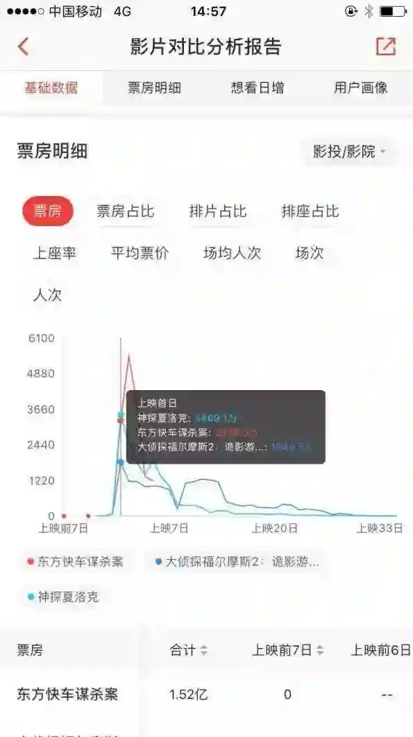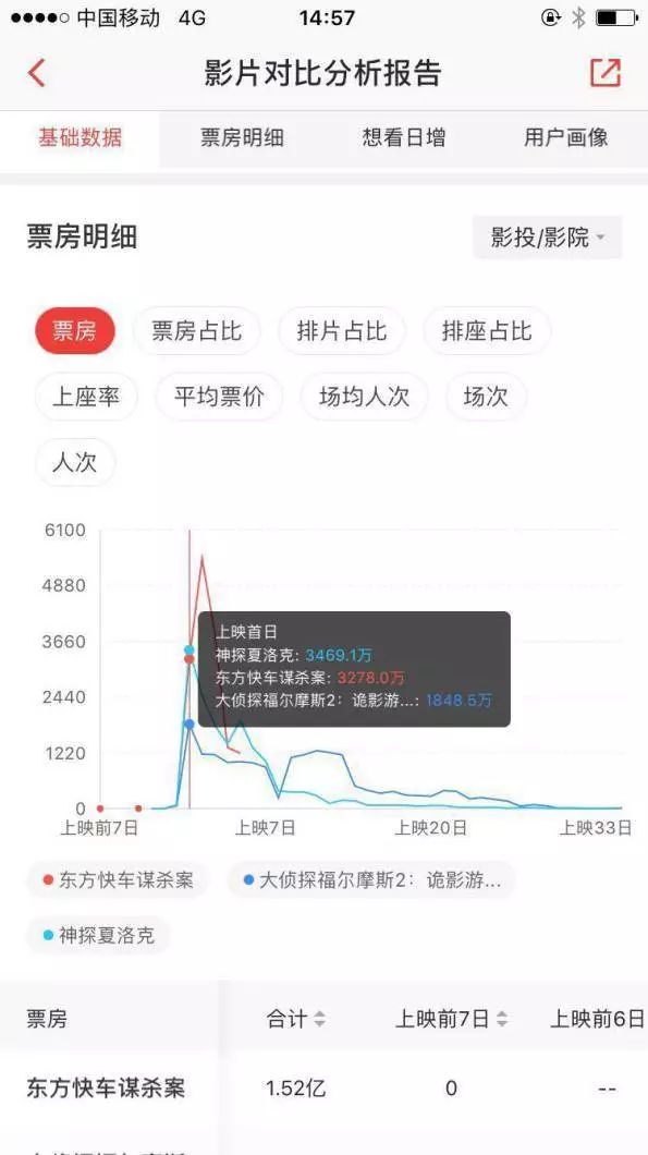 《东方快车谋杀案》是“推理小说女王”阿加莎·克里斯蒂开山神作,也是赫尔克里·波洛系列作品中知名度最高的一部,“福尔摩斯”系列以及《神探夏洛克》可以算作同类型可类比的影片,从票房走势来看,三者的趋势也基本相同。