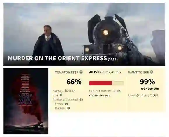 在猫眼分析师武剑看来,《东方快车谋杀案》这个IP对影迷来说是经典,但对于现在电影的主要观众年龄层来说并没什么特殊的吸引力。他说: