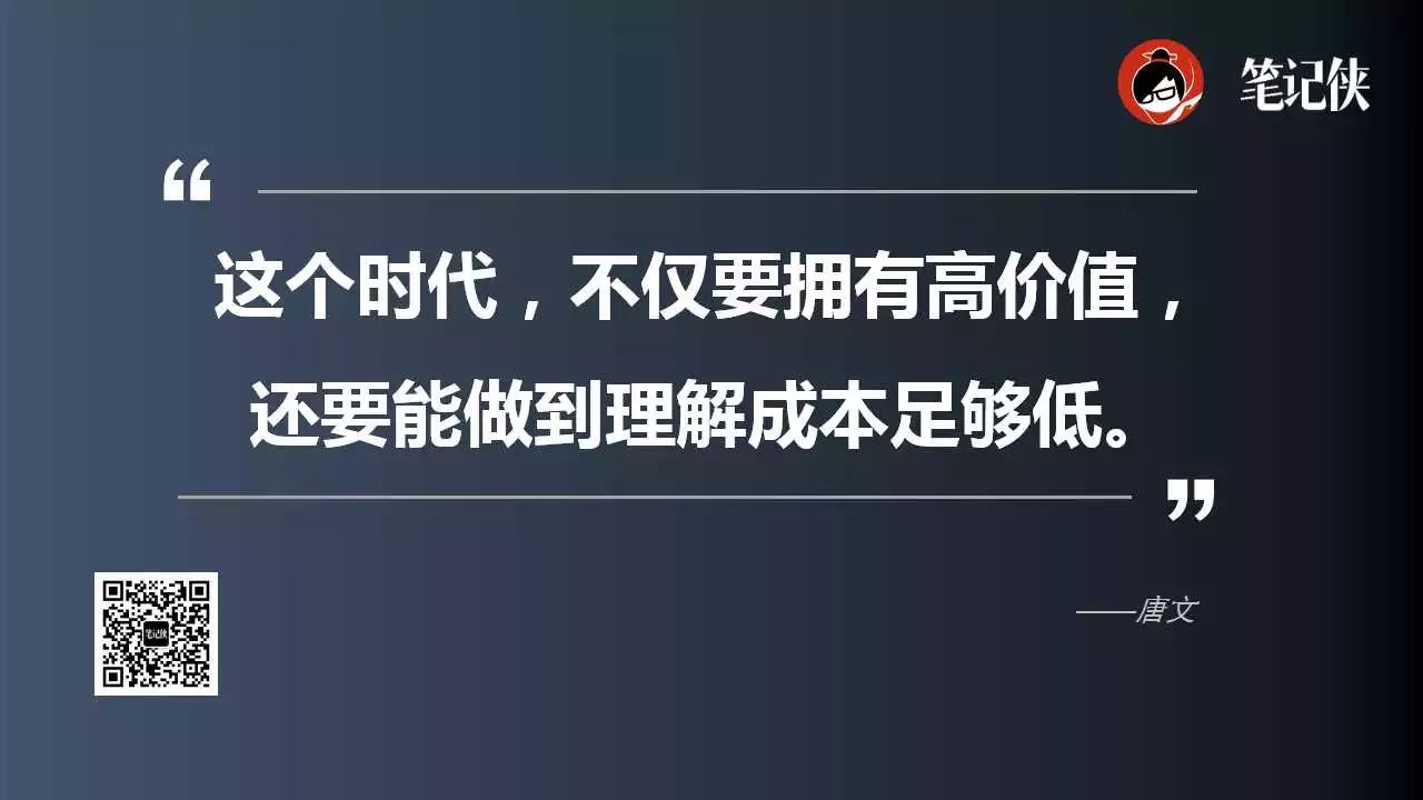 所以这个时代,你不仅要拥有高价值,还要能做到理解成本足够低,让人们凭借本能就能理解,就能使用。这是乔布斯引用斯图尔德·布兰德“Stay Hungry, Stay Foolish”的要义所在。