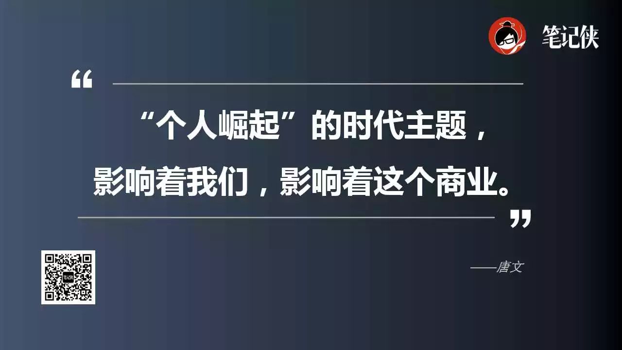 这个时代有个特别深刻的主题在影响着我们、影响着这个商业,这个主题叫做“个人崛起”。今天个人对于组织的依赖程度越来越低,对于周围环境的依赖程度越来越低。