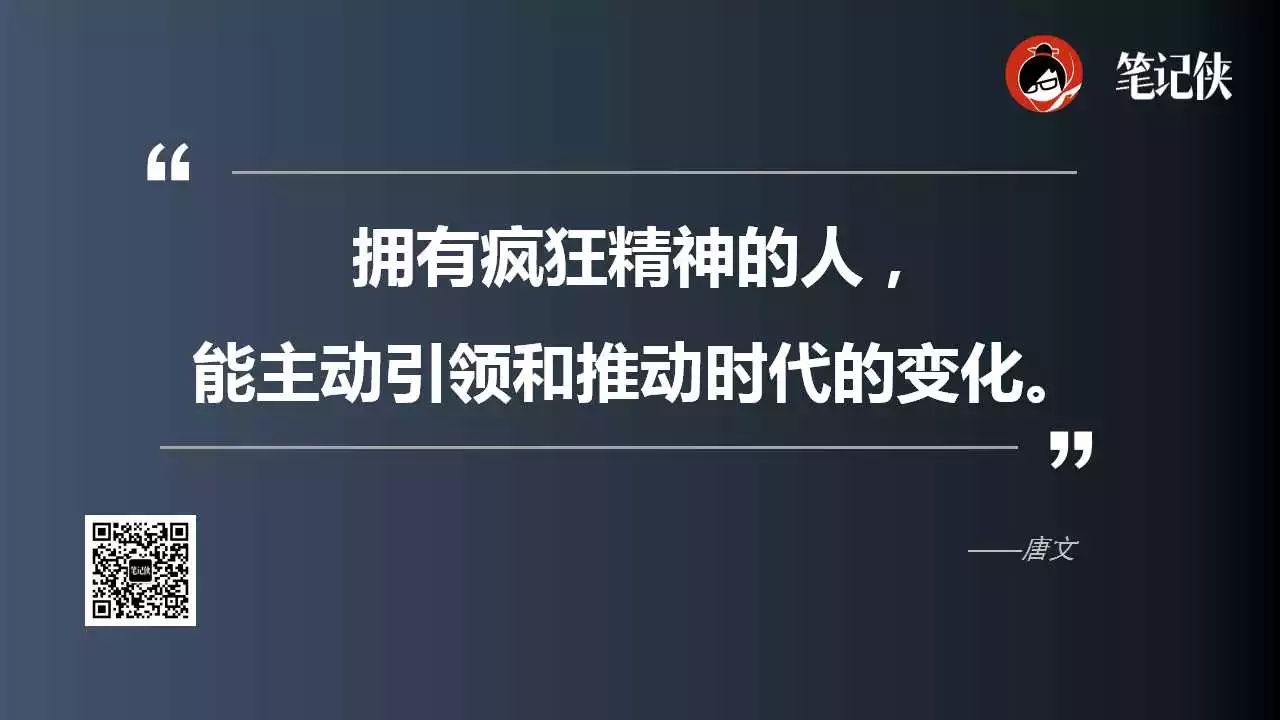 我们就是要做疯狂的人。拥有疯狂精神的人,能够去主动地引领和推动这个时代的变化。