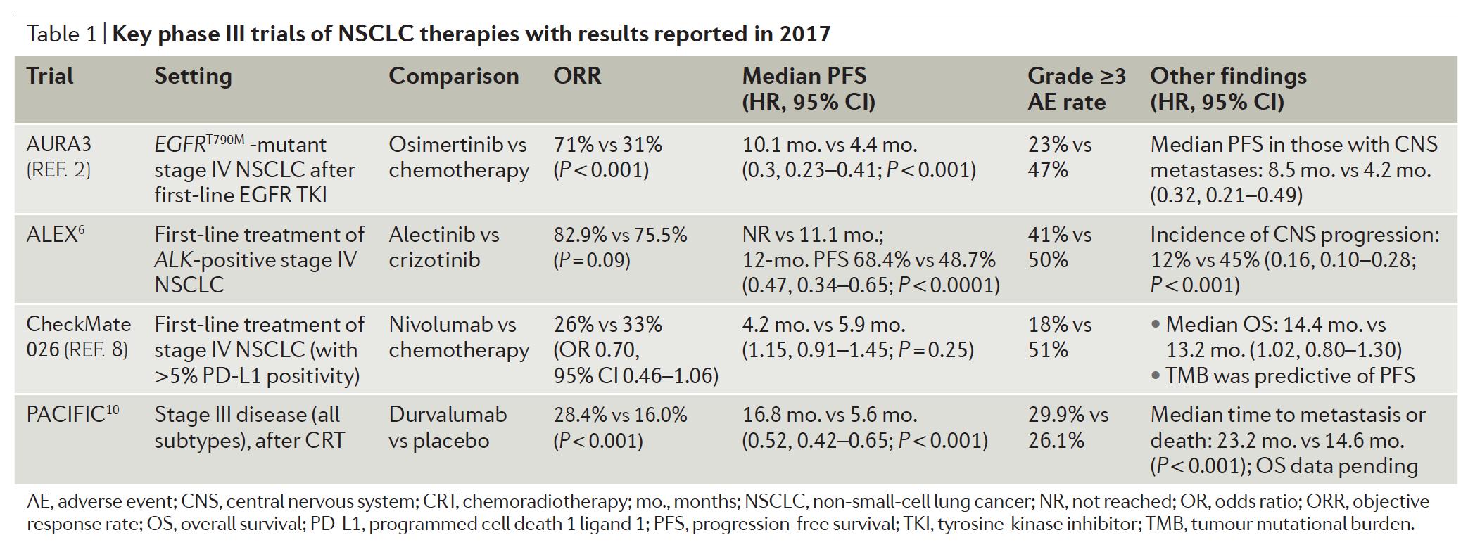 2017年,在NSCLC的治疗上,我们取得了重大的研究进展,尤其是靶向治疗和局部晚期NSCLC的免疫治疗。然而,免疫检查点抑制剂单药用于晚期NSCLC一线治疗上不一致的结果,是影响决定晚期NSCLC最佳治疗决策上的一个小的绊脚石。