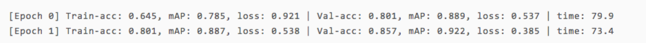 至此万事俱备,我们可以开始训练了!再次提醒,这里为了快速演示,我们只做两次循环,为了达到更好的训练效果请记得将epochs调大。