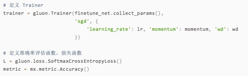 下面我们定义一些训练参数。注意,在迁移学习中,我们一般认为整个网络的参数不需要进行很大地改动,只需要在训练数据上微调,因此我们的学习速率都设为一个比较小的值,比如0.001。