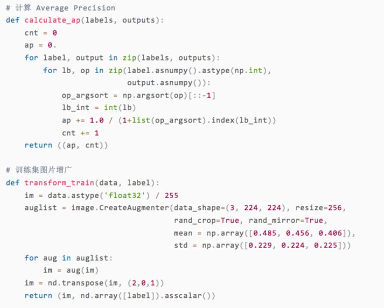 下面我们定义网络的优化算法和损失函数。这次比赛中我们选用随机梯度下降就能得到比较好的效果。分类问题一般用交叉熵作为损失函数,另外,我们除了mAP指标之外也关心模型的准确率。