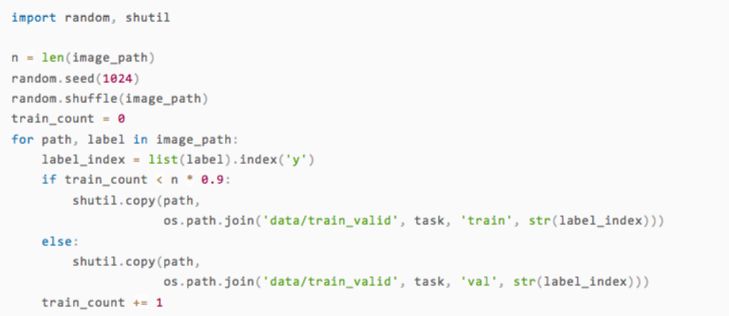 要想处理其他类型的服饰,只需要将task变量指定为对应的服饰类型名称就行了。最后,我们将图片复制到各自对应的目录中。需要注意的是,这里我们刻意随机打乱了图片的顺序,从而防止训练集与测试集切分不均匀的情况出现。