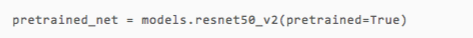 下面我们可以一句话导入预训练好的 resnet50_v2 模型。如果是首次导入模型,代码会需要一点时间下载预训练好的模型。