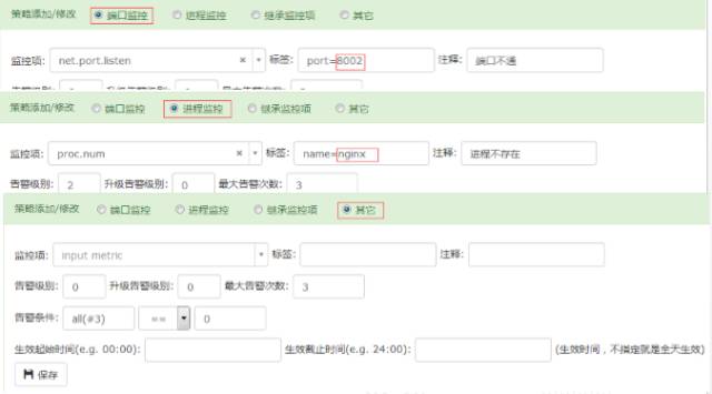 另一方面基于系统监控的模板,允许用户方便的添加应用监控,例如:只需要填写端口、进程名等就可以方便的添加端口监控和进程监控。