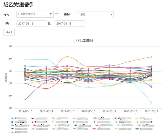 各域名的各种状态码的数量和比率、响应时间。