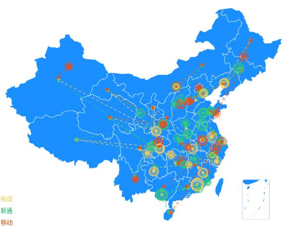 如下图所示,不同颜色的圆圈代表不同的运营商,节点覆盖了页面数量大的区域。