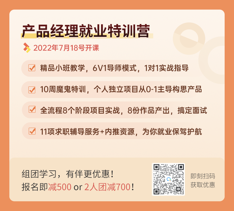 不少同学找我要咨询和规划:“自学没效果还错过了实习,还有机会吗?”,“只要开始,都有机会!”快速入行拿下产品offer,特训营7月开班,暑期、秋招都能搞定!