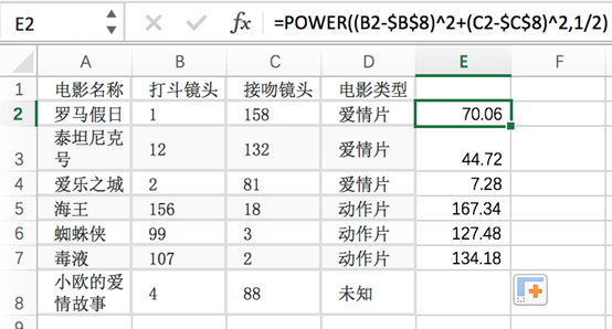 我们只需要计算欧氏距离(这个是真的叫欧式距离)