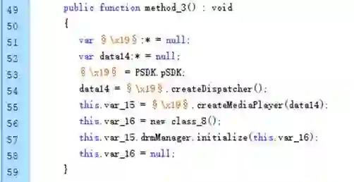 该部分漏洞的关键代码存在于method_3方法中,该方法new了一个class_8的对象,并传给drmManager.initialize,然后将var_16置空。