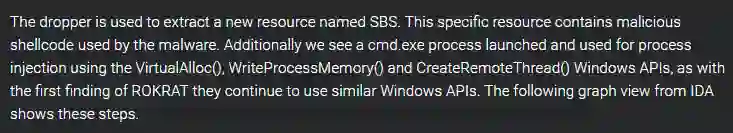同时,程序的执行流程和技术细节也与思科报告中的dropper程序一致,疑似是同一系列的ROKRAT木马程序。