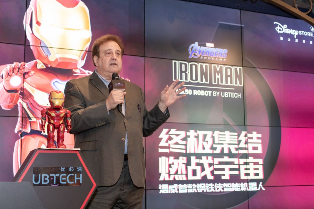 4月26日,优必选钢铁侠MARK50机器人在迪士尼商店线下首发,进驻位于上海陆家嘴的迪士尼旗舰店及迪士尼商店∙兴业太古汇店。在线下首发活动上, Andy Rifkin说,优必选之所以选择钢铁侠这个IP,不仅因为他是开创了漫威宇宙新纪元的英雄,更是因为和其他超级英雄相比,钢铁侠聪明、幽默,同时也拥有普通人的弱点,更容易被人接近,这些立体的人物个性塑造了一个在全球范围内广受欢迎的角色。而且,除了角色本身蕴含的个人魅力,钢铁侠的战甲一直深受粉丝喜爱,从外形上看,这也与人形机器人的形象十分契合。