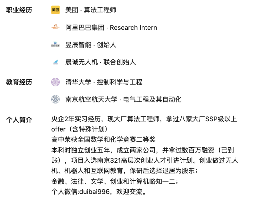 公号作者名叫对白,是一位本科创业赚数百万的清华小哥哥,目前在