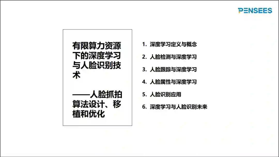 近年来,所有的人脸识别算法都是基于深度学习完成的,所以今天分享的内容也基于深度学习来展开,具体目录如下: