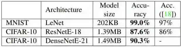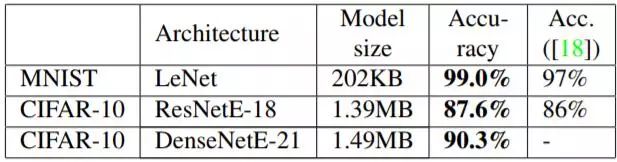 表 1:在 MNIST 和 CIFAR-10 数据集上,本文提出的二值模型的性能与 Yang 等人 [18] 结果的对比。