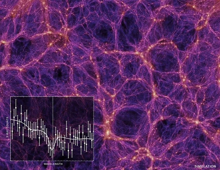 宇宙中近三分之一的质量仍然无法“找到”,有观点认为它们可能以温-热星系际介质(WHIM)的形式存在。来自钱德拉 X 射线天文台的观测结果为这一观点提供了支持。