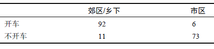 如果我们想知道人们居住的位置和是否开车之间有多强的相关性, 应该怎么做?到目前为止,我们介绍的测量相关性的方法一般都用于测量连续值数据(比如股票价格),而不用于测量离散值(比如位置类型或电影类型)。如果我们只有两个变量,而且每个变量只有两个值,那我们就可以用皮尔逊相关系数的简化版——Phi 相关系数。