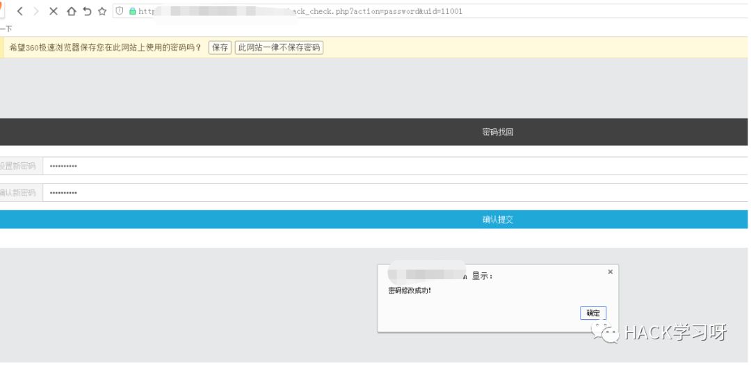 当问题不存在 答案不存在的情况下 问题=答案 跳转到更改密码界面 --- 更改uid值为test用户uid ===== 成功更改test用户密码