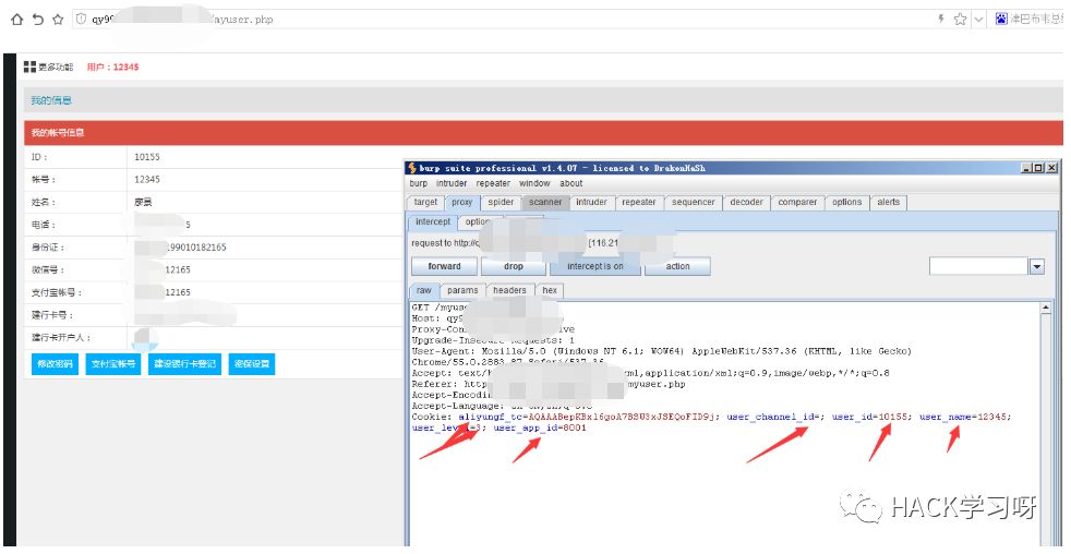 当咱们对myuser.php 进行访问时 服务器缓存的cookie 信息为以上图片内