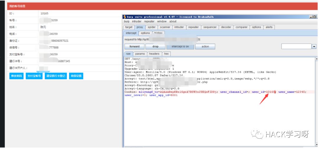 尝试修改账号信息为123456789 数据并未发生改变