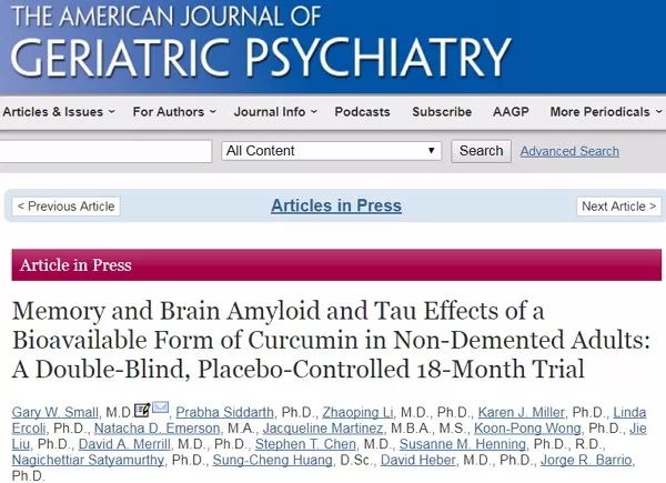 为验证猜想,Gary Small团队开展了为期18个月的双盲、对照试验,共招募40名都有着轻度记忆衰退的中老年人(年龄范围在50-90岁)。受试对象被随机分成两组,每天分别接受两次90mg姜黄素或者安慰剂。