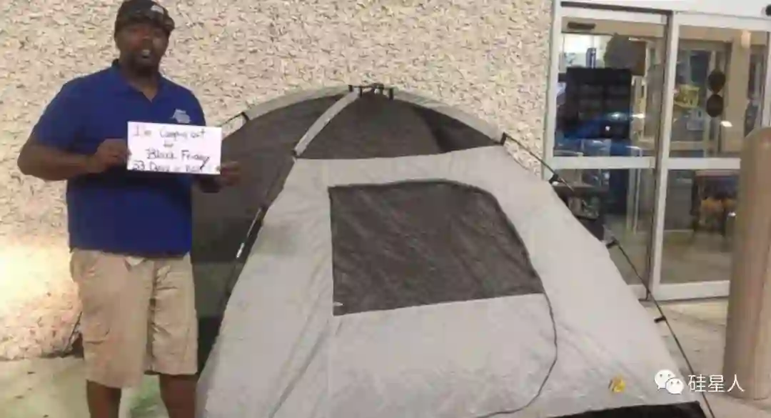 就在 Best Buy 门口搭好帐篷带好干粮,