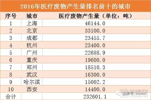 214个大中城市中,排名前10位城市产生的医疗废物总量为23.3万吨,占全部信息发布城市产生总量的32.3%。