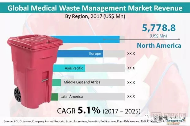 Transparency Market Research (TMR)最新报告显示,2016年全球医疗废物管理市场的规模已超过100亿美元,按照5.1%的年复合增长率计算,预计到2025年市场规模将突破223亿美元。