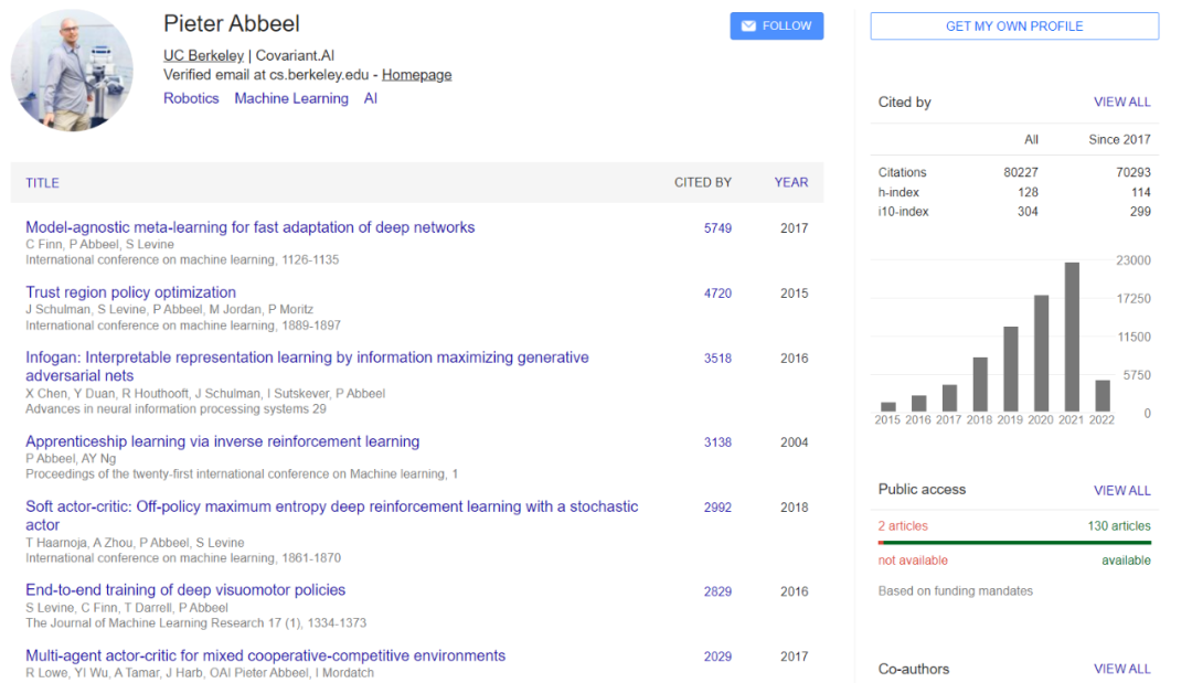 Pieter Abbeel 现为加州大学伯克利分校计算机科学与电气工程教授,也是人工智能机器人公司 Covariant 的联合创始人、总裁兼首席科学家。Abbeel 在比利时鲁汶大学获得电气工程学士学位,并在斯坦福大学获得计算机科学硕士和博士学位(师从吴恩达)。