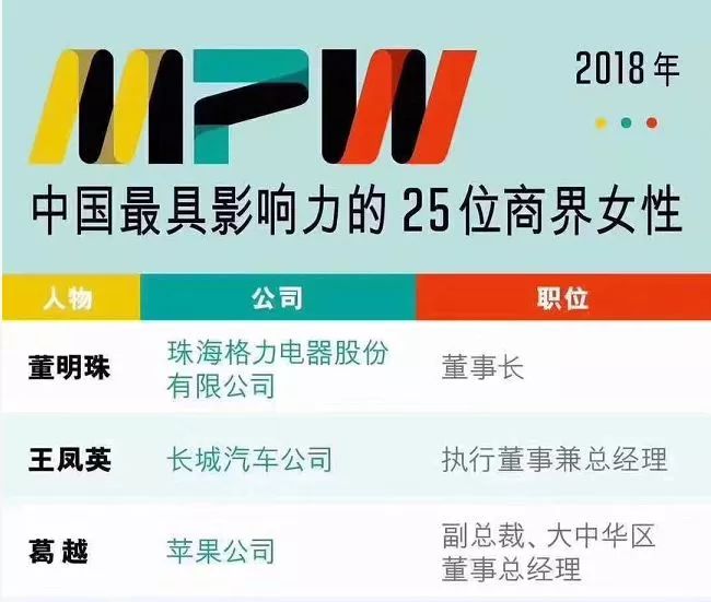 在2018年全球最具影响力的商界女性以及中国最具影响力的25位商界女性排行榜上,董明珠均榜上有名,分列第4和第1。