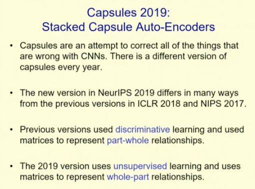 吐槽完CNN,Hinton开始介绍重头戏:Capsules 2019: Stacked Capsule Auto-Encoders。