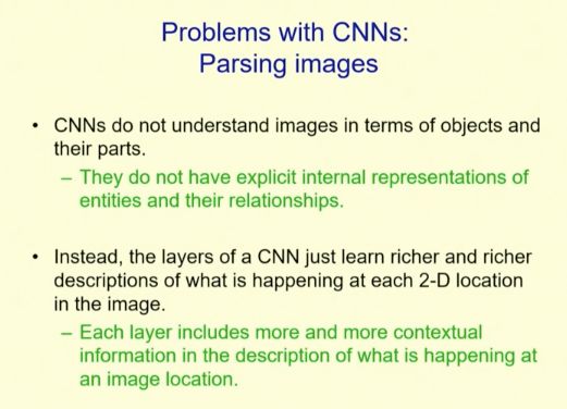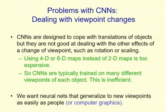 用Hinton的话讲,CNN就是"rubbish",问题很多,比如处理视角的变化、解析图像、对抗性例子等等。