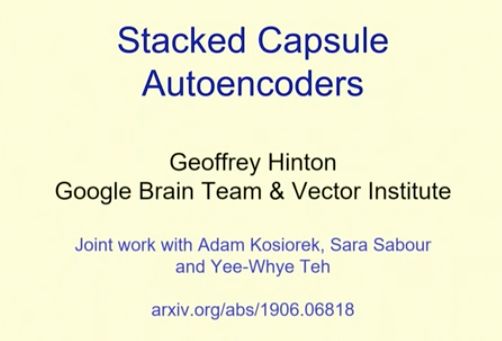 首先,Geoffrey Hinton登台,做了题为“Stacked Capsule Autoencoders”的演讲,这也是他去年一篇论文的题目。