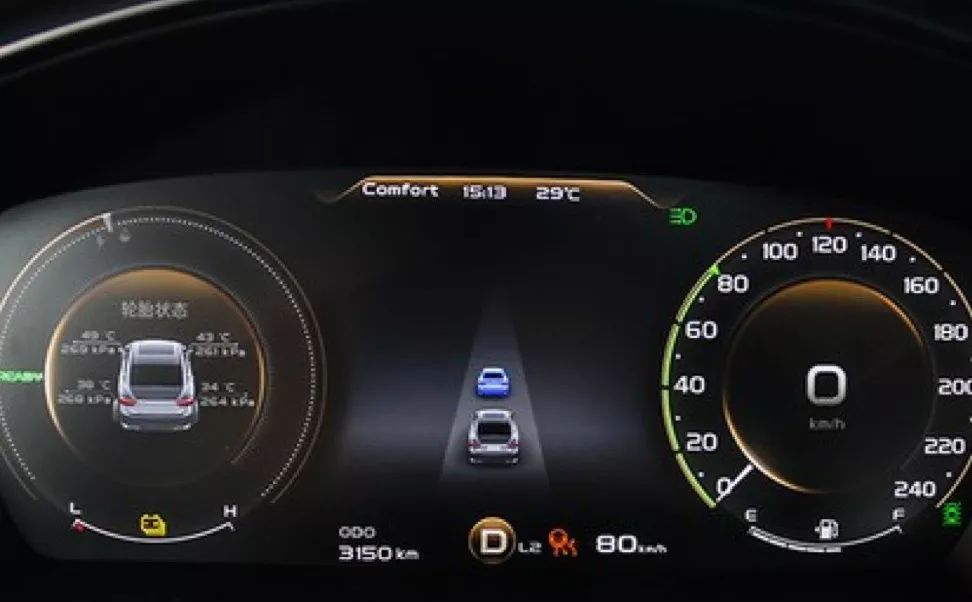 他说高老师,这不是技术的问题,是设计的问题。他给我看了这款车的智能自动巡航系统,在它的右下角有这样的一个绿色小狮子形的图标,告诉你自动巡航系统在正常地运转。