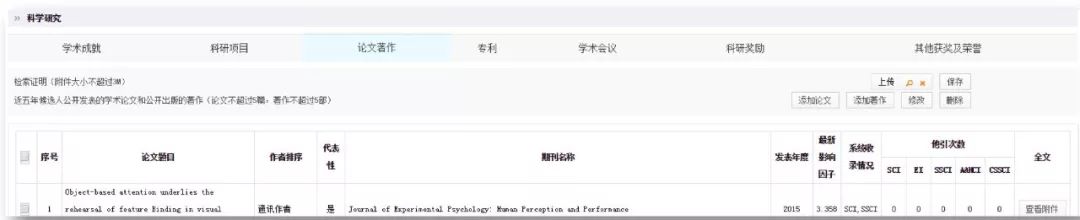 后来我终于发现,原来我漏了一个东西——这个检索证明。我为什么会犯错呢?因为检索证明和下面这一项要提交的论文太相似了,挨得又近,又都是文字。而有关检索证明的上传控件和论文控件又隔得比较近,所以它们又变成一体的。我绝对没有想到它实质上是让我做这个事情:提供检索证明。