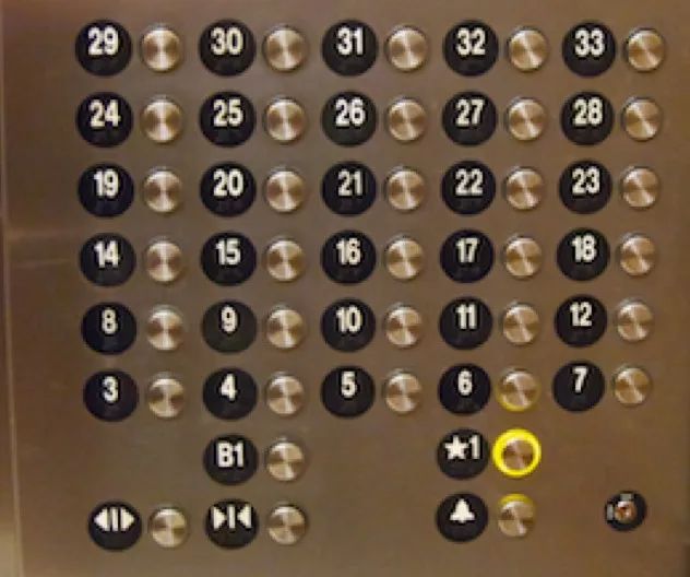 类似这样的电梯按键我们经常会遇到,也经常会被搞晕,有时候要好一会才找的到想去的楼层按键。为什么呢?因为电梯的按键布局出了一些问题。比如说我们看这两款。