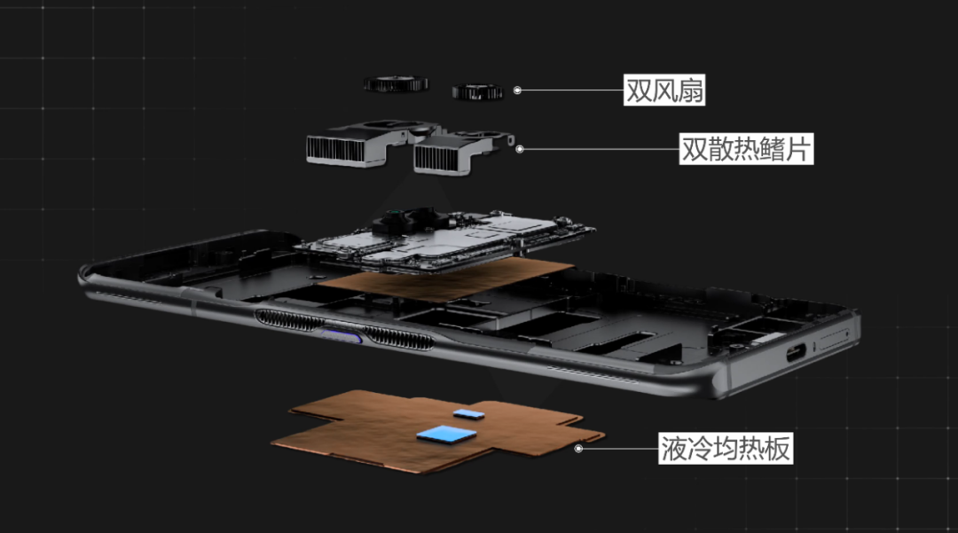 在内部堆叠上,可以把较为重要的 SoC、相机模组等元器件集中在手机的最中间,不论是纵向握持还是横向握持,都能达到最佳的平衡性;对于游戏玩家而言,玩游戏的时候都是横向握持,手指也较少触碰到手机的中间部位,SoC 等发热量大的元器件放在这个区域,对于手感,特别是温度方面的影响比较小。假如换成常规布局的手机,对游戏玩家来说,机身一边重一边轻,或是酣战时不小心被凸起的相机模组硌到手,再或是被逐渐升温的后盖烫到手,都很影响游戏体验。