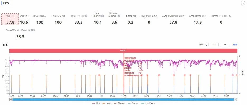 Y700 搭载了一颗骁龙 870,具体表现如何呢?同样半小时的《原神》,平均帧率居然达到了 57.8,并且表现稳定。