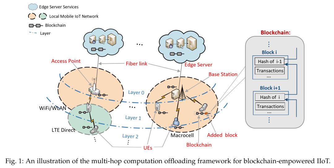 《Cooperative and Distributed Computation Offloading for Blockchain-Empowered Industrial Internet of Things》研究了如何建立一个可信高效的工业物联网(IIoT)。文中创新性地在IIoT中引入了区块链技术并为IIoT提出了一种基于博弈论的多跳协同分布式计算迁移算法来帮助建立一个可信高效的IIoT。区块链技术的引入使得在IIoT中能够进行安全可行的计算资源交易。多跳协同分布式计算迁移算法共同考虑了IIoT中的普通数据处理任务和区块链挖矿任务并从经济角度最小化所有IIoT设备的消耗。