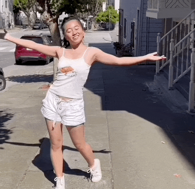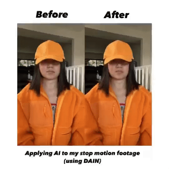 此外,她还用DAIN插值模型,通过在图片之间插入平滑帧,做出了一些酷(sha)炫(diao)的视频。
