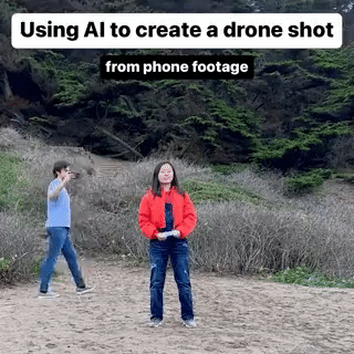 全程没有用到无人机,她让一位小哥帮忙拿手机沿着无人机的部分关键路径进行拍摄,后期则处理全权交由NeRF。