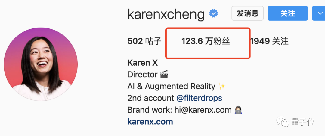 靠AI制作小成本特效视频也成功带火了这位华人导演,目前她在ins上的粉丝数已达120多万。