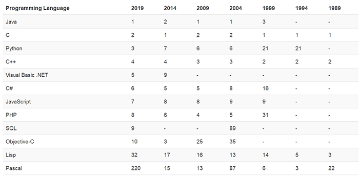 这个排行榜可以用来考查你的编程技能是否与时俱进,也可以在开发新系统时作为一个语言选择依据。