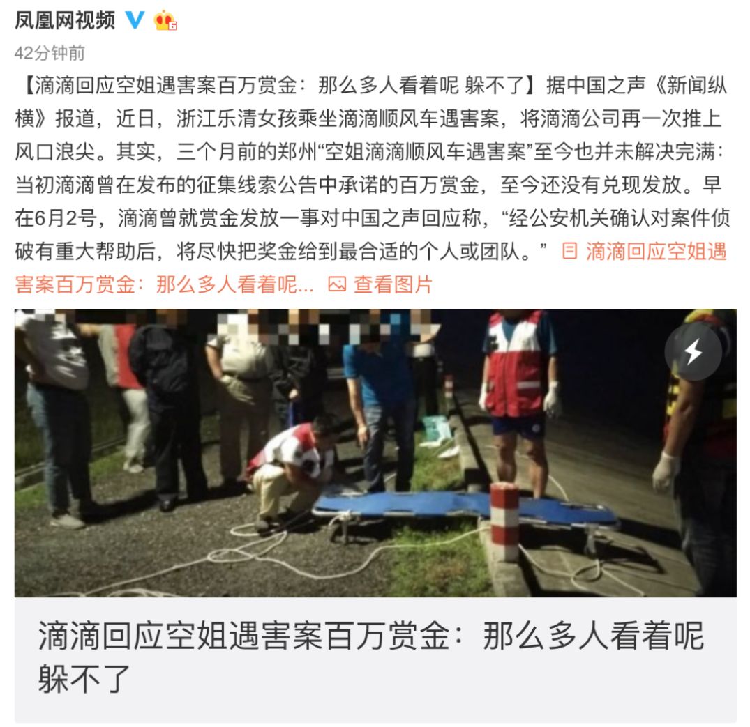 滴滴回应空姐遇害案百万赏金 | 微博@凤凰网视频