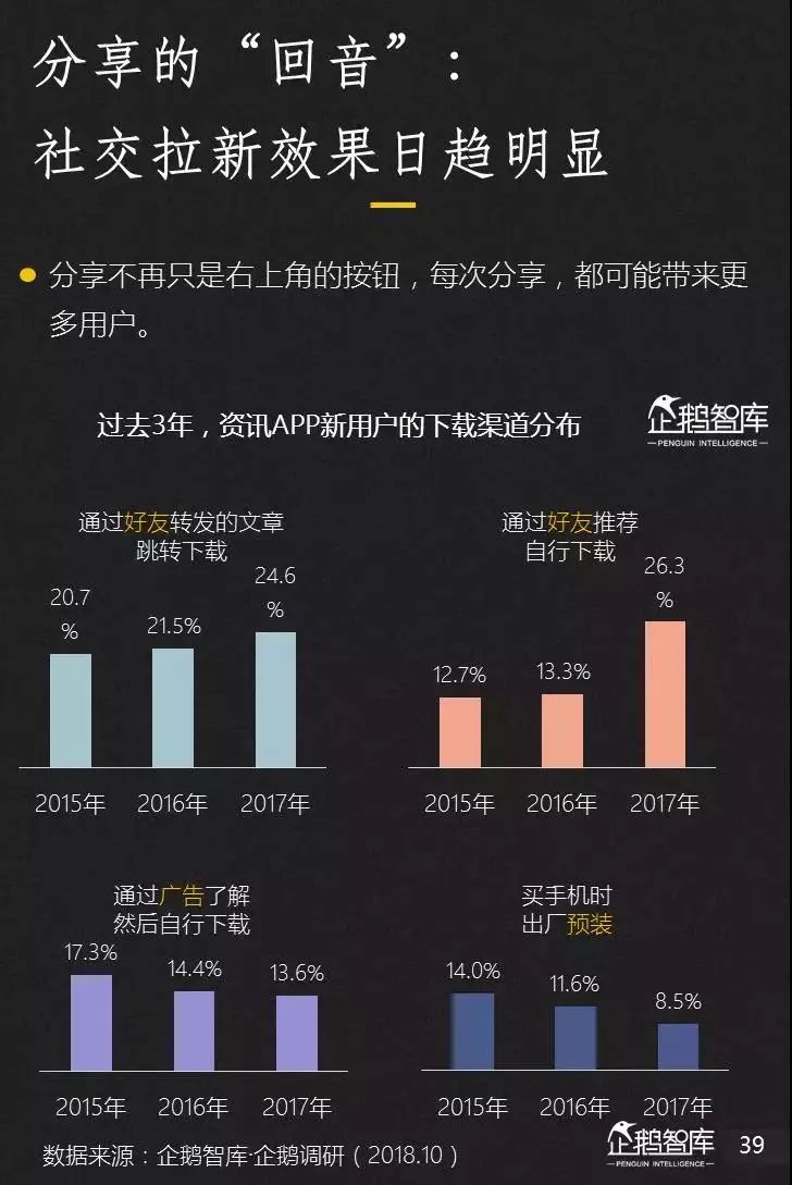 生长趋势五:社交裂变。社交的资讯渠道价值已经逼近资讯App,位居移动端次席。